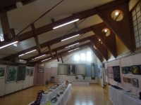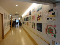 会場は例年のように公民館で行われたが、今年の春に開所したサポートセンター摂田屋様の地域交流ホール・廊下等も利用しての作品展示であった。地域の幼稚園児の作品・小学生や中学生の作品が、所狭しと展示されていた。特に、上組小学校は昔から美術に特化した時間を授業にも取り入れているから、その素地はできているのである。