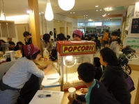 サポートセンター摂田屋会場とも連携 廊下に展示された子供たちの作品 ドリンクコーナーもありお祭り気分!
