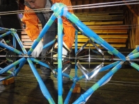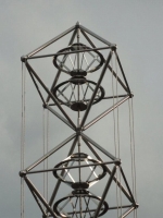 この純粋造形は、接触・連結する圧縮材を連続的な張力ストリングで統合・安定化させるという「テンセグリック・システム」(命名:斎藤公男工学博士)から生まれています。