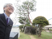トップコーンは弓矢のように 美しい”百年の風”全景 除幕式ではコンセプトの話に秋山先生の力がはいる