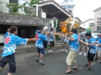 最後は弊社の前でわっしょいわっしょい!さーて一服だ! もう一度最後の仕上げの神輿まわし!