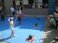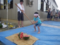 早々江口屋主さんからビールの差入 スイカ割り大会は楽しい想い出 渾身の一撃「エイ・やー・ボコ」