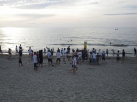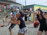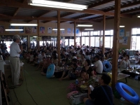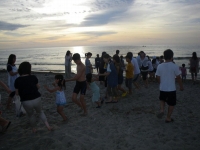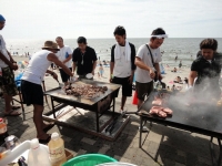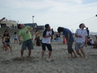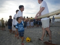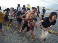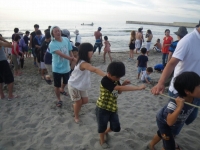 スイカ割り・宝探し・障害物レース・餅まき大会〔模擬上棟式をする〕・そしてクライマックスは地引網である。