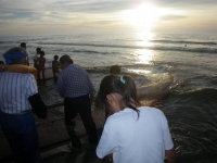 さて、クライマックスは午後6時頃から手繰り引き寄せられる地引網である。〔今年は時間の都合で私自身はこのクライマックスには出席できなかったが例年の風景を思い出しながら記す〕