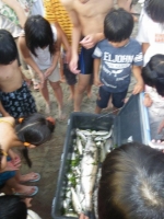 歓声が上る。そして、すっかりと引き寄せられた地引網には様々な種類の魚がかかっている。子供も大人も目を輝かせながら魚を持ってきたボックスに拾い上げていく。