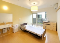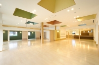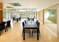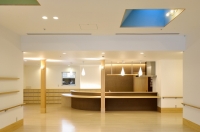 カラフルに語るトップライト ウィング棟毎に設置されたリビング サテライト特養の個室はゆったりスペース