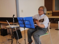 開講前は園長のギターでリラックス いよいよ開講である 多くの方の目と耳が釘付けに成った