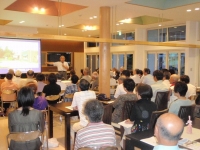 第6回APM大学講座の開催である 熱弁をふるう秋山孝先生と食い入るように耳を傾ける聴衆の皆様