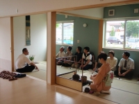 内覧会二日目に弊社「茶道を楽しむ会」のメンバーで10:00~15:00までの間、お茶会のサービスに参加した。場所は小規模多機能の畳の間二間を使っての茶会開催である。