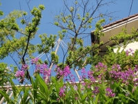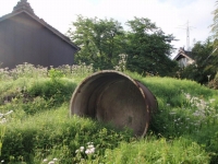 我が家に咲いた紫蘭 蔵と草の中に埋もれるどらむ缶 溜り水に映る鉄塔