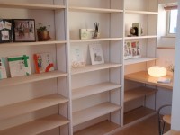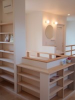 一面性の書棚ではなく、階段室を巻き込んだ立体的な書棚はとても楽しいことである。書籍の様々な文字スタイルやカラーカバーが並んだ時を創造するだけで余計に楽しくなってしまう。巻き込んだ書棚に書斎机が配置されとても居心地の良い空間が出来た。