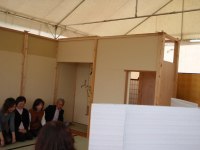 一昨年、町内文化祭の日にリプチの森で茶会を開いた。その時でも、滝沢先生のご指導で、道安好みの三畳下座床の一夜城ならぬ一夜茶室の出現であった。畳の寸法がこんなにも茶事を制約していることを肌で分からせていただいていることでもあった。元旦茶事は、窮屈を我慢しながら自服も含めて五服点てさせていただき、美味しい!結構なお含み加減です。と言われて何ともほっとした一瞬でもあった。そして、滝沢社中の初釜が1月10日に開催された。