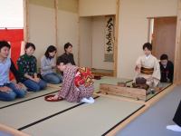 いよいよ私の番で少々緊張? 初釜記念写真 リプチの森一夜茶室の3畳下座床