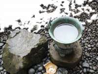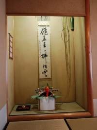 つくばいで手と口を清めて入室です 何とも雅な「蓬莱山かざり」 4畳半小間の床飾り