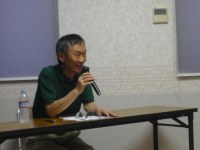 講演後の打ち上げ会 永田先生と記念写真 チャンス虫