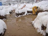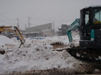 土+雪の根切り 人力排雪 雪の中での工事は根気比べ
