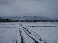 山も田も雪景色:絶景かな 雪降り前の一部遣り方完了 掘削と同時に雪が降り始めた