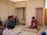 T先生は年齢に反比例するかのようにスピードアップで、様々な点前を教えようとされている。実践も大事と、二年間に二度のお茶会を持たれ我が社のスタッフも大奮闘である。(私の役どころは切符きり)昨年10月には分譲土地:リプチの森で一夜城ならぬ一夜茶室がつくられ町内の文化祭に合わせて茶会を開催したのである。寸法は利休の長男:道安好みの三畳下座床であった。