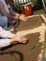 今年は先生も助手もお出ででない。そこで私の出番である。水こし・灰干し・秘伝の液体入れ・練りこみ・灰干し・・・何度も繰り返して最後に篩い落としして出来上がりである。