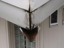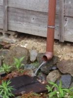 ふっと目を移すと雨板張りの家屋に取り付けられた縦樋が目に留まる。