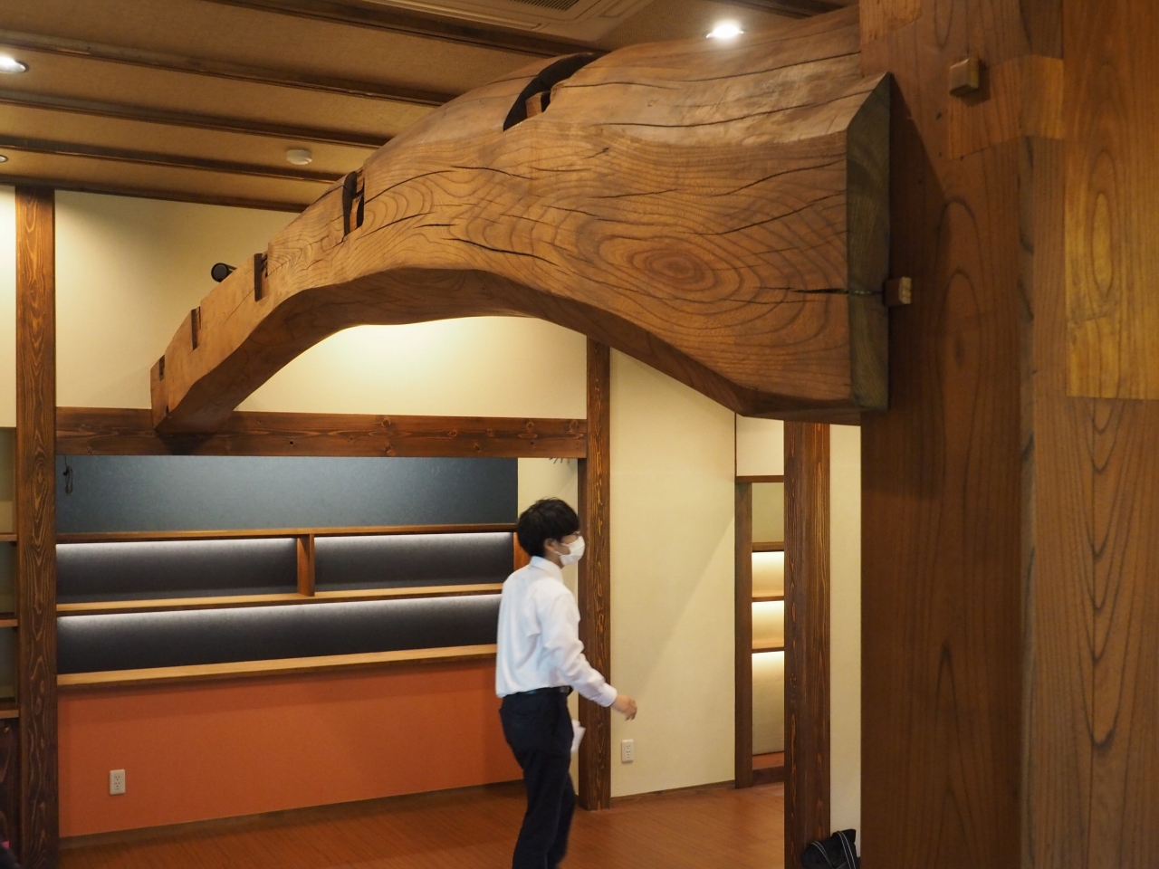 見事なケヤキ板の廊下に、18mの杉丸太。紫檀の床柱や桐天井。