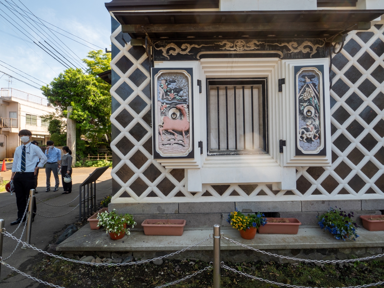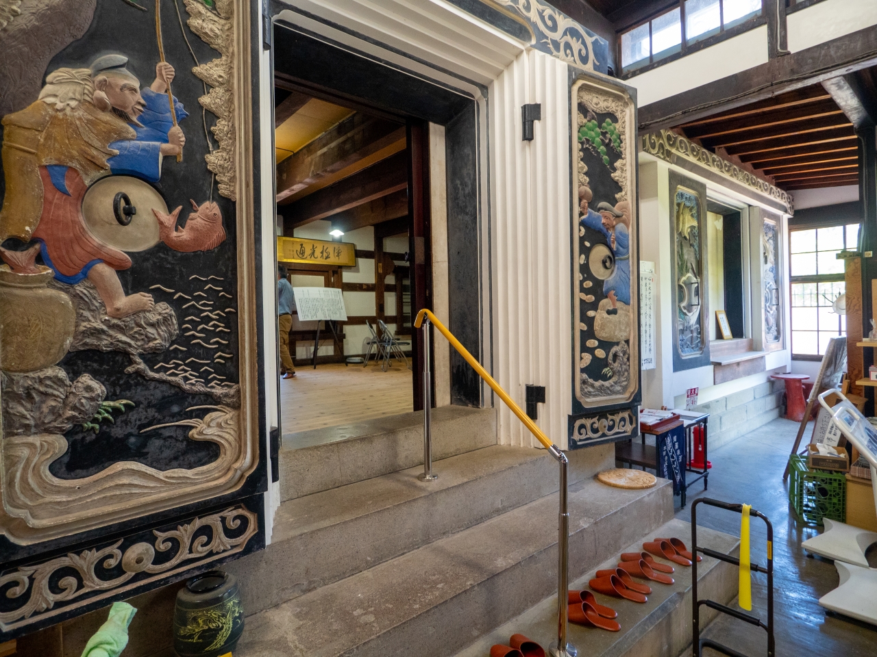 主屋から出入りできる蔵の扉にも、圧巻の色彩豊かな鏝絵が施されていました。
