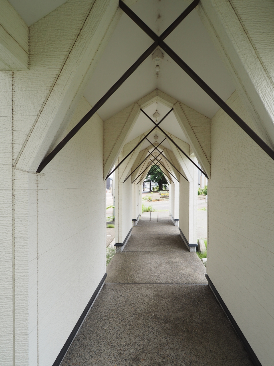 長い雁木は秋山先生の意向。遠方からでも雨に濡れずに訪れることができます。