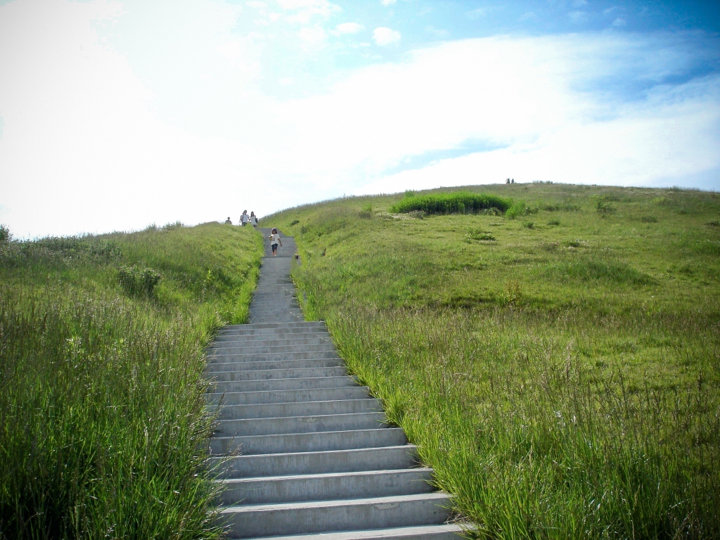 石狩川の河跡湖であるモエレ沼に囲まれた立地に、不燃ごみと公共残土により造成された人工の山‘モエレ山’を中心に空間デザインされた公園です。