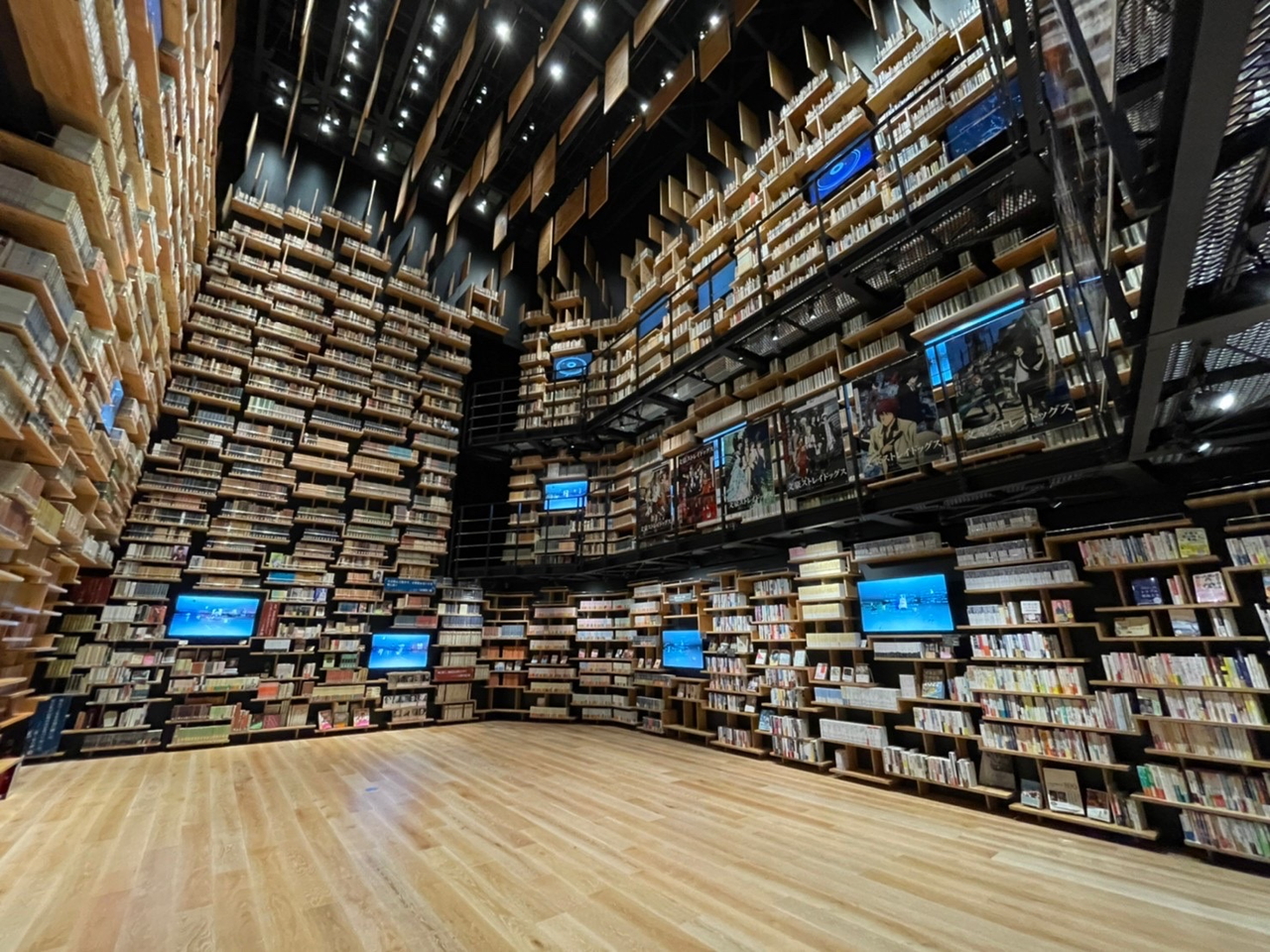高さ8mの本棚が四方を囲み、漫画や小説、ラノベなど様々な本が並びます。本に包まれることで、落ち着きも感じる空間でした。