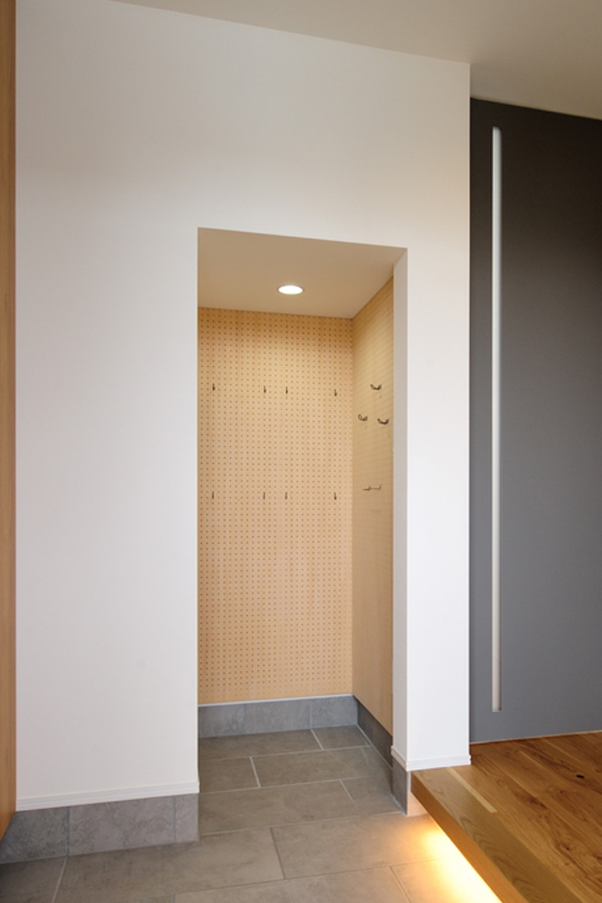 こちらもスペースに限りがあるシューズクローク。毎日使う帽子やバッグ、傘もかけられるようにフックを付ければ、傘立てなども別で置く必要がありませんね。