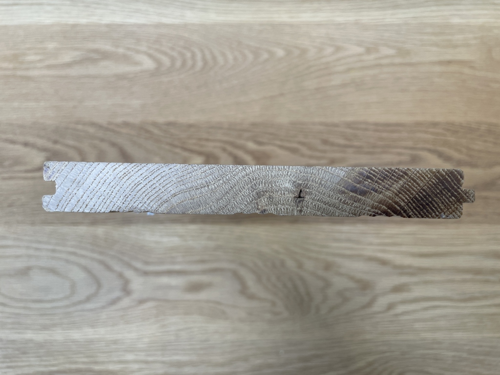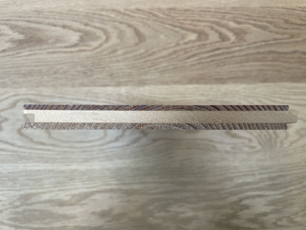 集成材や合板の上に天然木を薄く貼って作られています。無垢に比べて反りやねじれが少ないため、床暖房対応の商品が多く出ています。