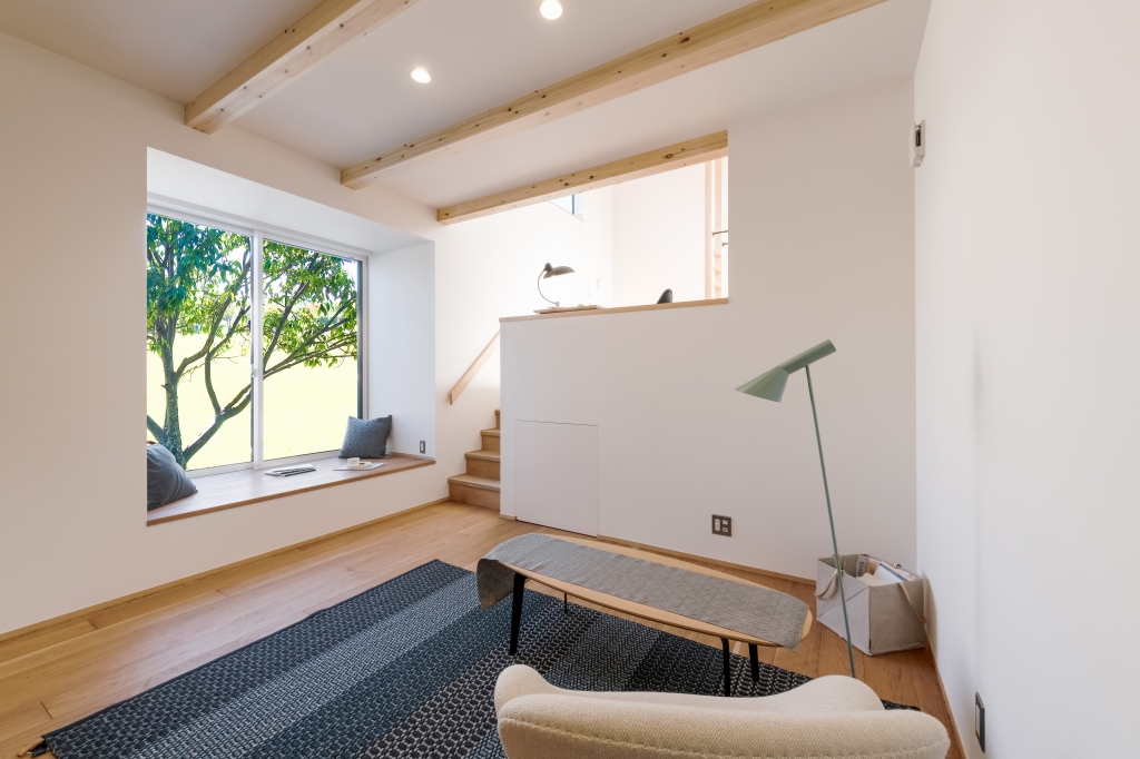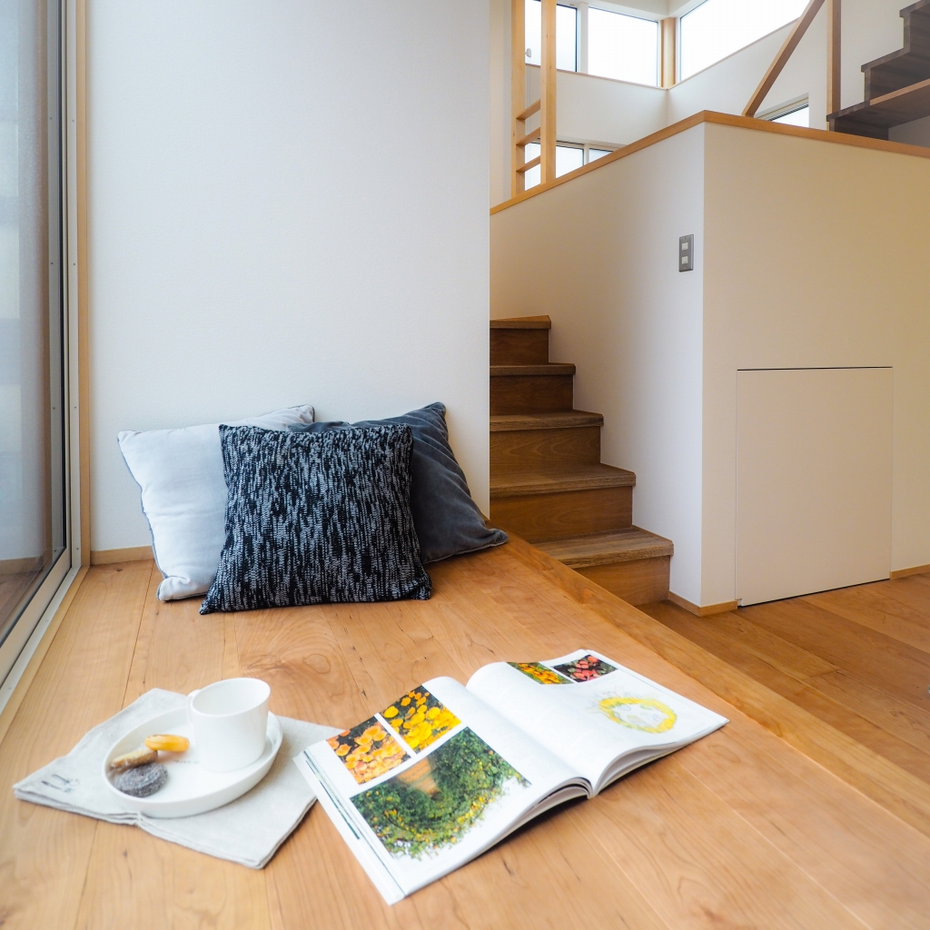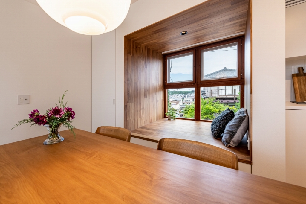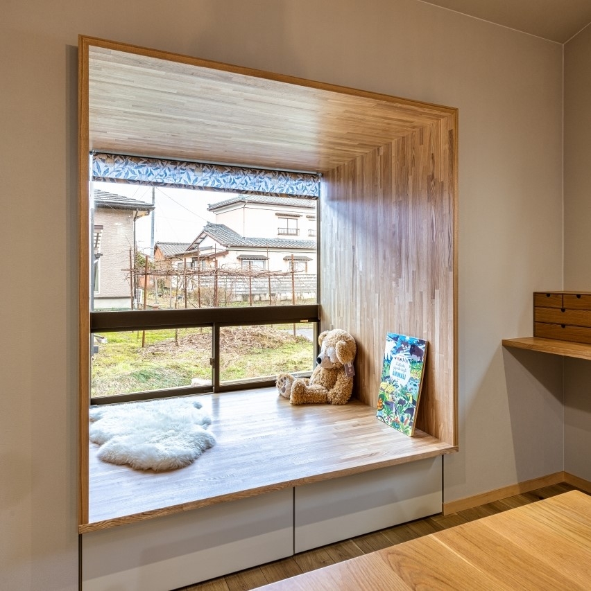 通常の出窓より奥行きを少し深くして、気軽に寛げるようにした出窓ヌック。