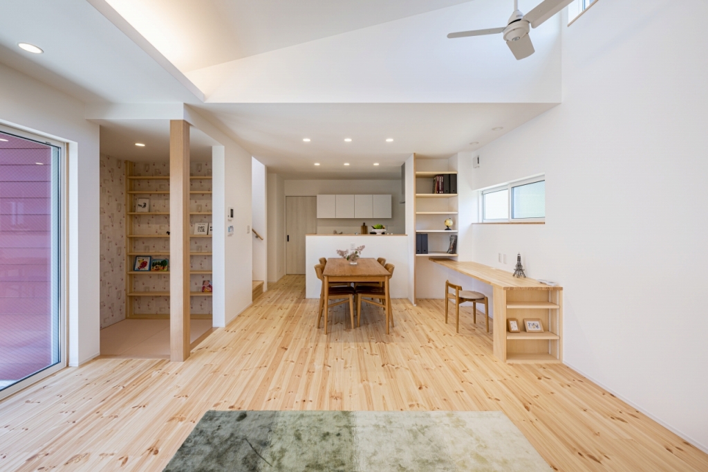 コンパクトな入口とは対照的に中はゆったり。家族と同じ空間にいながら、集中できるスペースになっています。