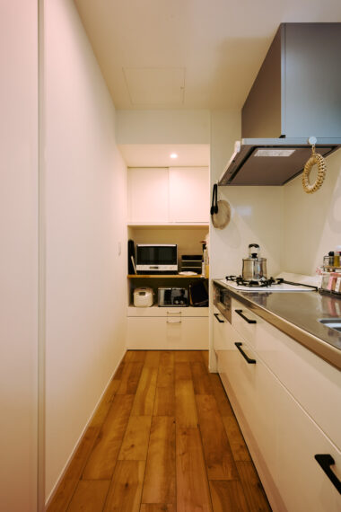 直線上に置いた冷蔵庫など、家事動線は効率的で「とても使いやすい」と奥さま。