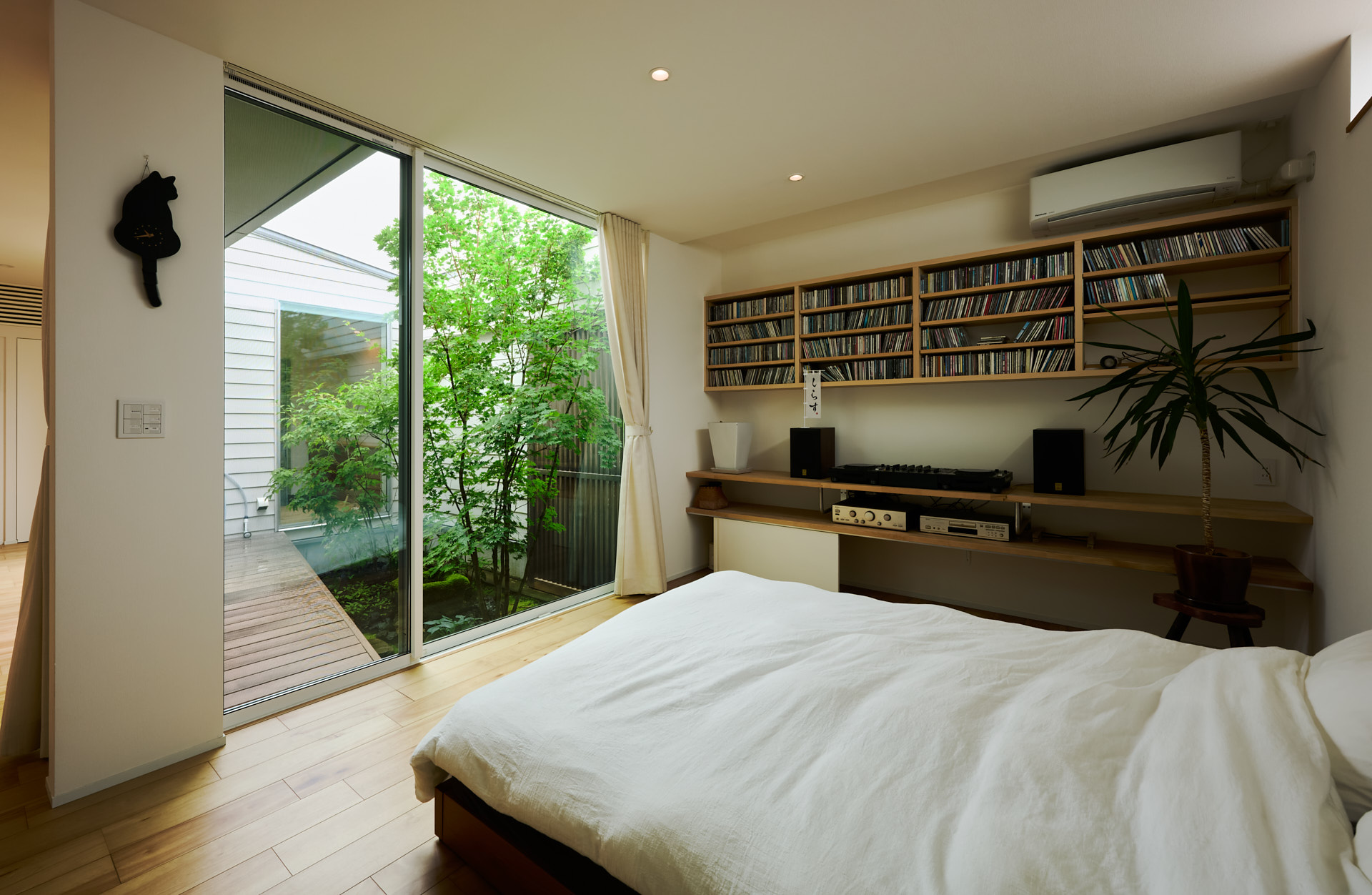 「中庭はもう一つの部屋。だから昼間はいつもカーテンを開けておきます」とご主人。