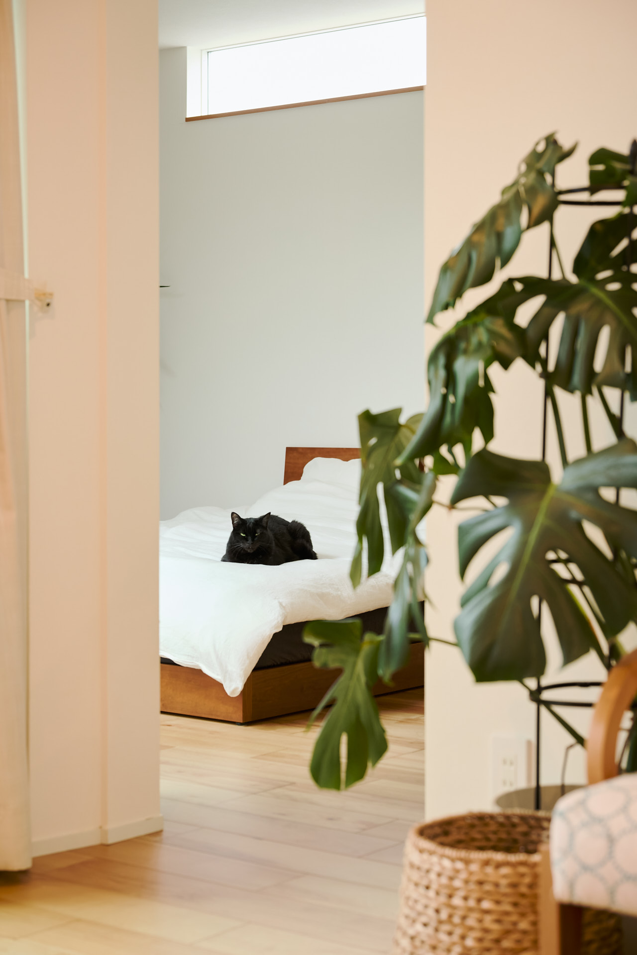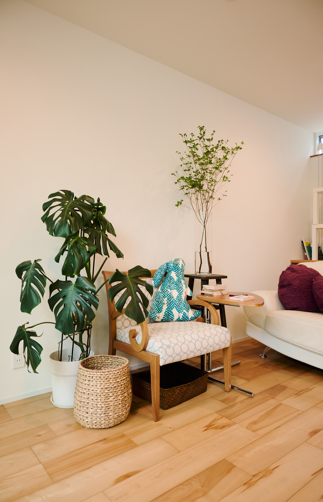 白い壁やすっきり整えられた室内がうってつけの背景となり、室内のどこを切り取っても絵になる。