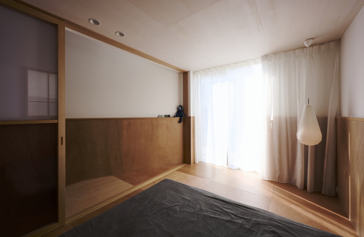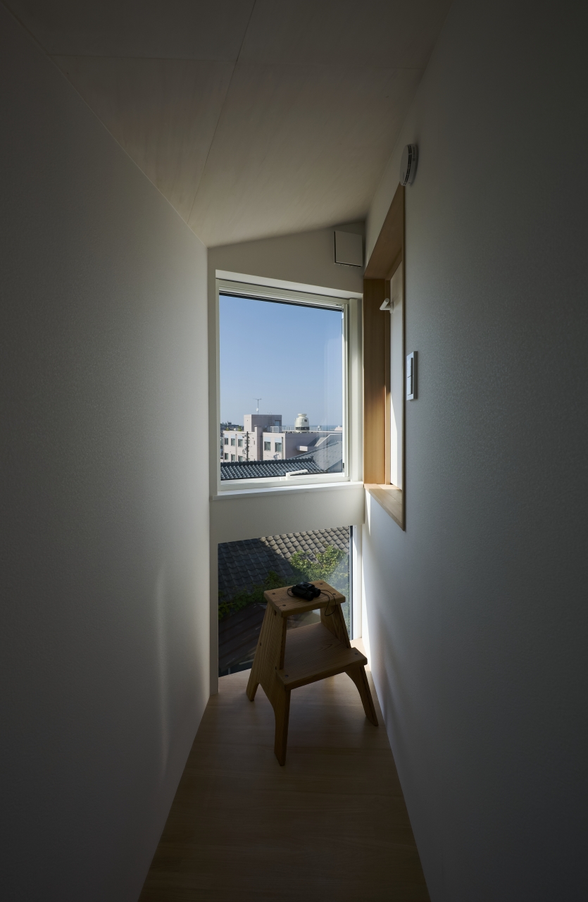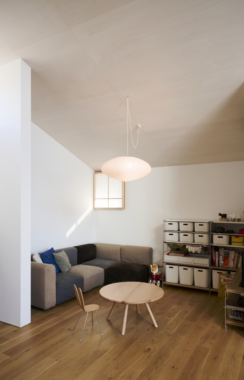 ことさら、奇抜な設計にしているわけではない。敷地に対しては素直に、高低差に倣いつつ、室内の壁だけ斜めに振って。その小さなアイデアが、暮らしの中に大いなる遊びと余白を生んでいる。設計の奥行きを、静かに教えてくれる家だ。