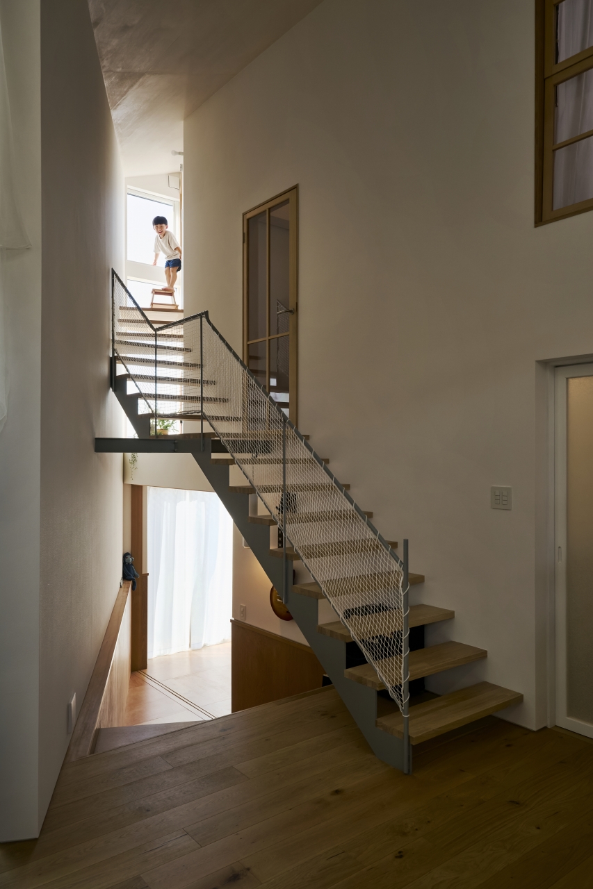 引っ越して1年。お子さんの友だちが来ると、高低差は魅力的な遊び場になる。かくれんぼをしたり、飛び降りたり、駆け上がったり。