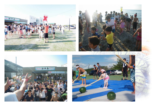 当日はスイカ割り、上棟式に行われる「餅まき」に加え、今年は「○×クイズ」を復活させたりと、