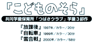 はじけんばかりの表情を見せる「放課後」(97年)。思春期に入ろうとする6年生の冒険サイクリング旅行の「自転車」(99年)。雪合戦に興じるこどもたちのエネルギーが爆発する「雪合戦」(2000年)。この3本が一緒になった、珠玉のドキュメンタリーです。