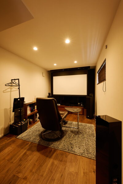 プライベートを確保した間取りは、「一人一人の時間も大事にしつつ、2人の時間も楽しめる絶妙の距離感」と奥さま。音楽鑑賞が趣味のご主人は、浸りたい時には2階のオーディールームへ。1階のリビングにいれば、2階の気配もそれとなく伝わってくるという。