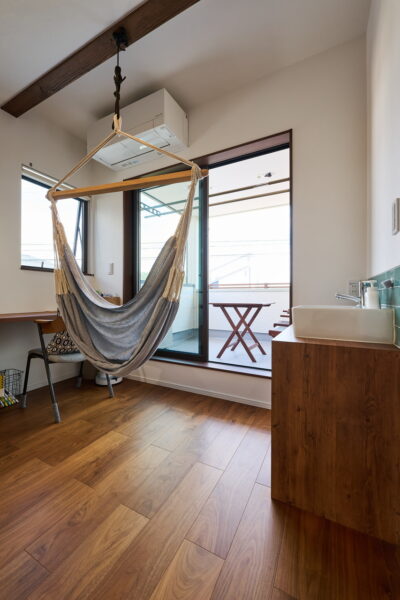 間取りが叶えた”絶妙の距離感“に「喧嘩もなくなりました」。何より、暮らしが変わった。掃除嫌いが掃除好きに、TVよりも雨音やラジオを聴いたり、朝日の中で過ごしたくて早起きになったり。ハンモックで読むからと、ミステリー小説を買うようにもなった。