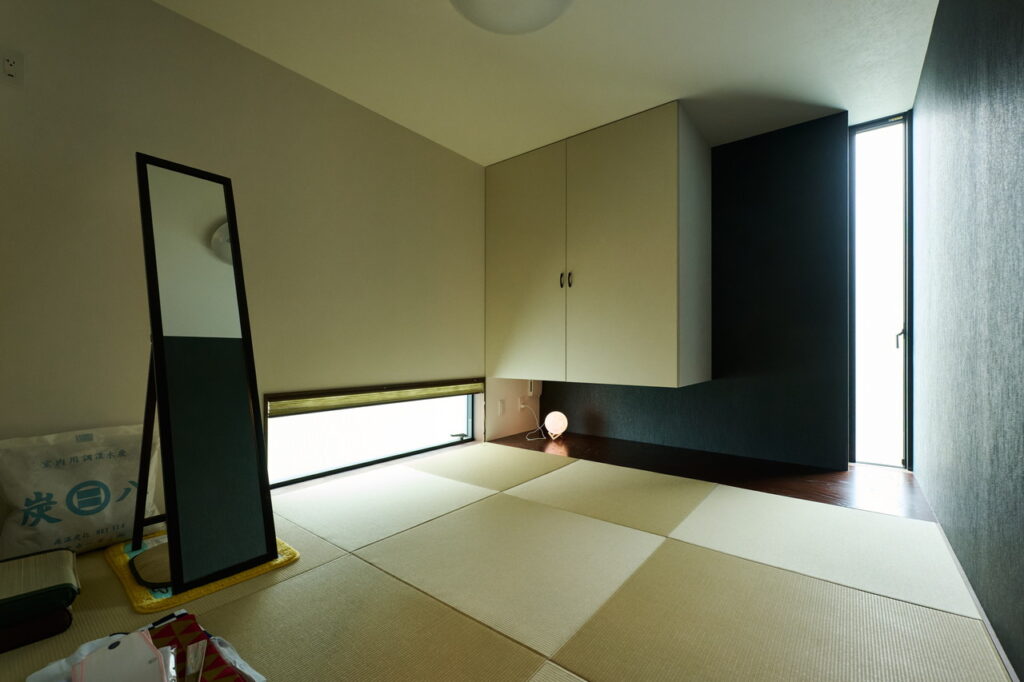 和装も趣味という奥さまが「着付けの時に」と1階には和室も。地窓やスリット窓からの光がやさしい。