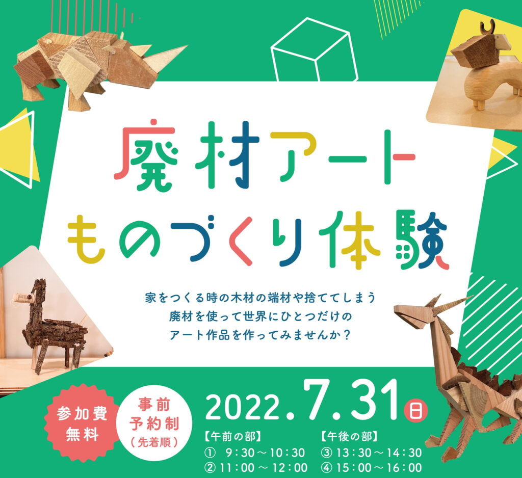 家をつくる時の木材の端材や捨ててしまう廃材を使って、世界にひとつだけのアート作品を作ってみませんか?