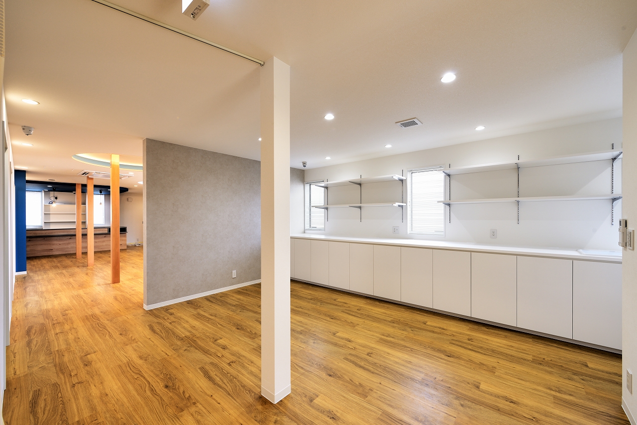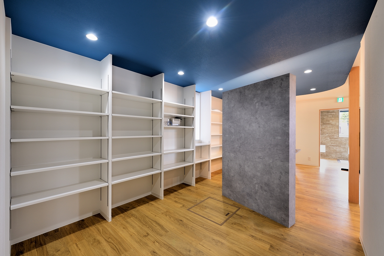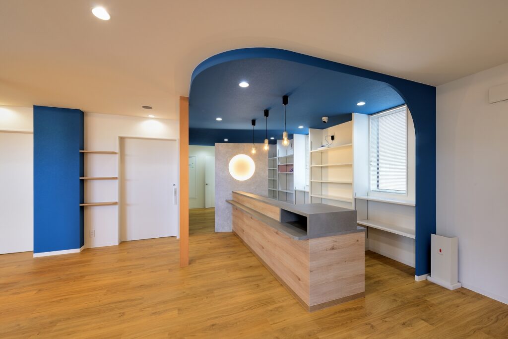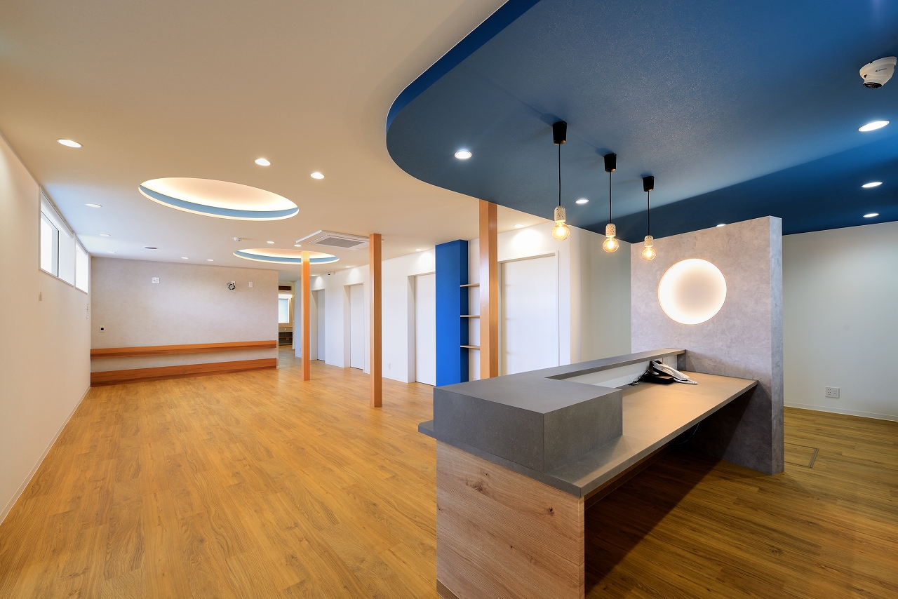 待合の天井にもブルーサークルをモーチーフにしたデザインをしています。