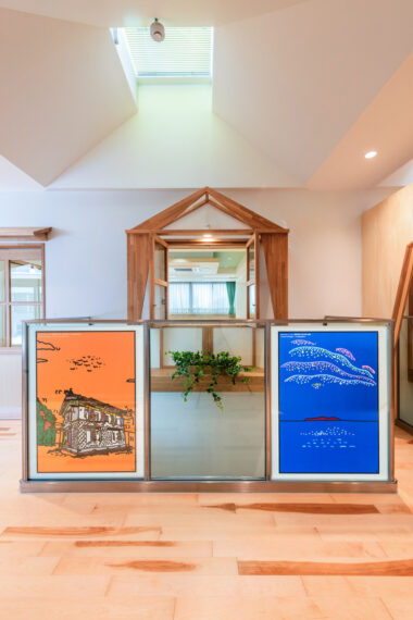 トップライトから光が降り注ぐガラス手摺りは、秋山孝ポスターミュージアム