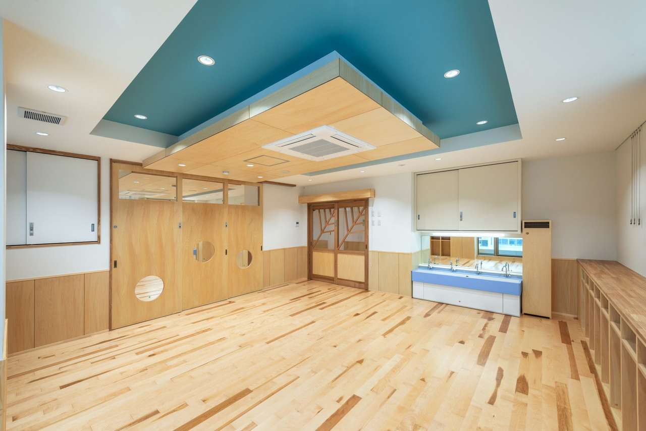乳児室とほふく室の中間に設置した水廻りは、ファンタスティックに不思議な国へ誘う