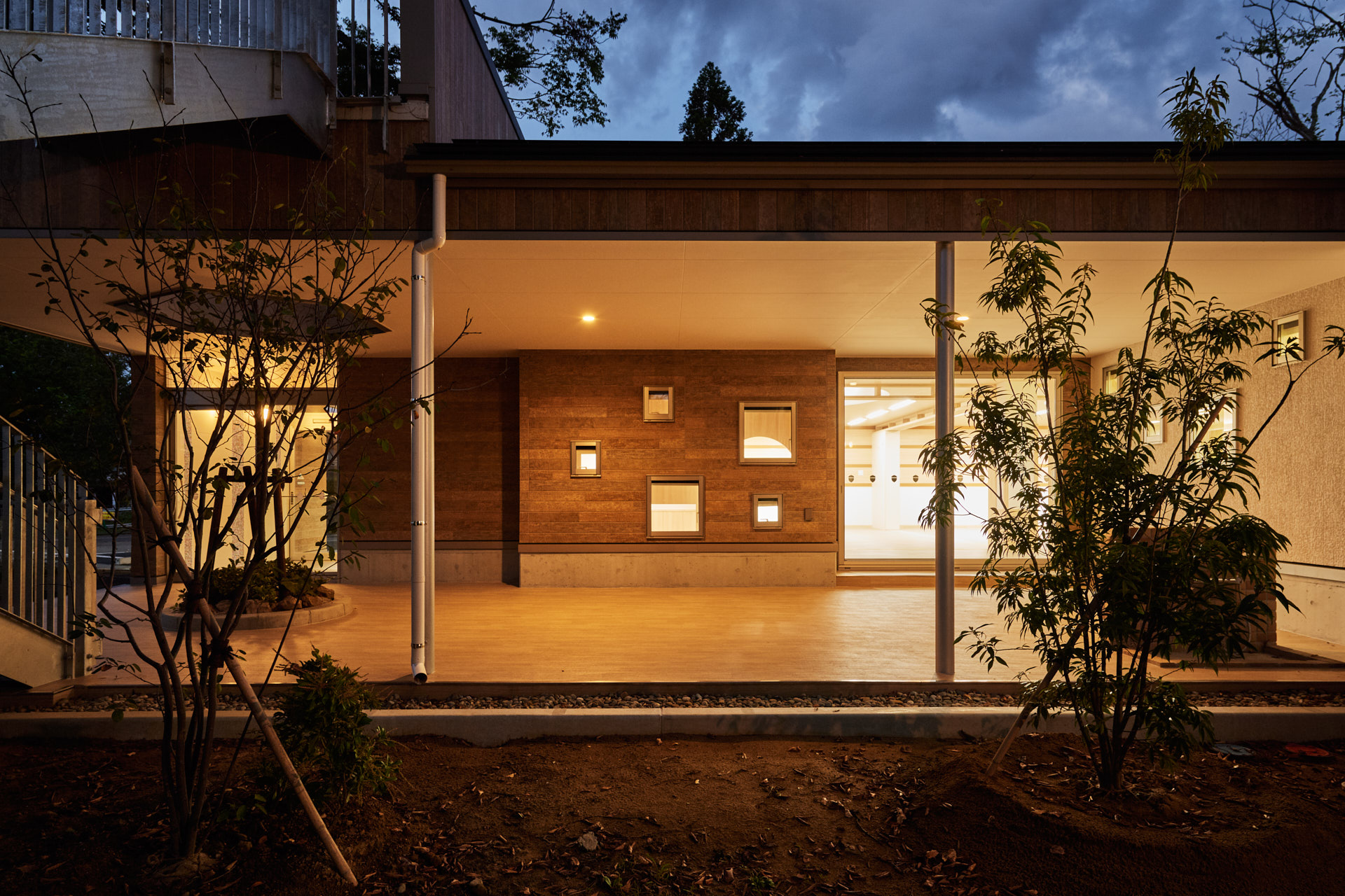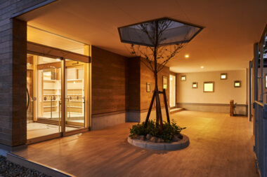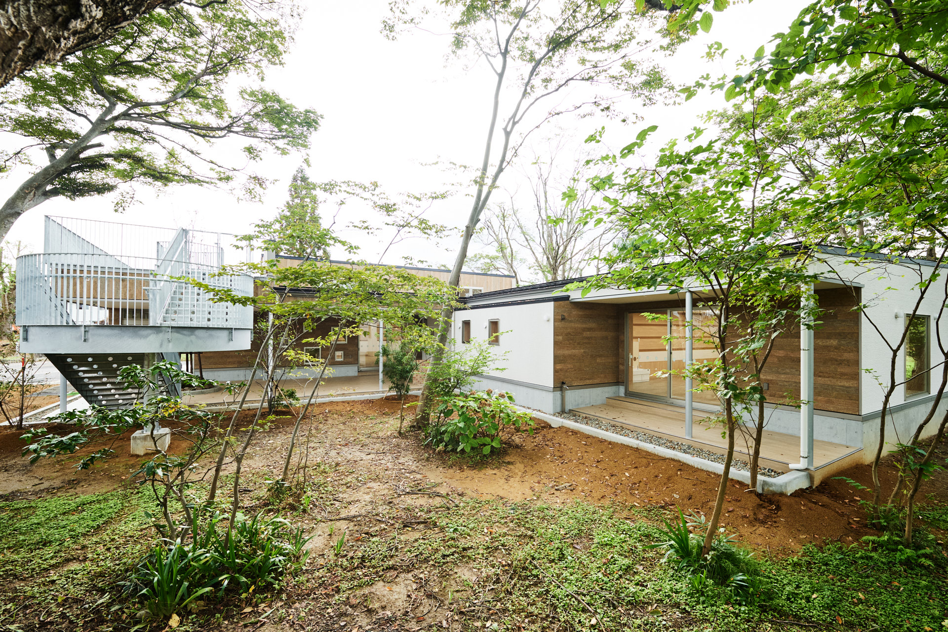 建物は森と一体化し、