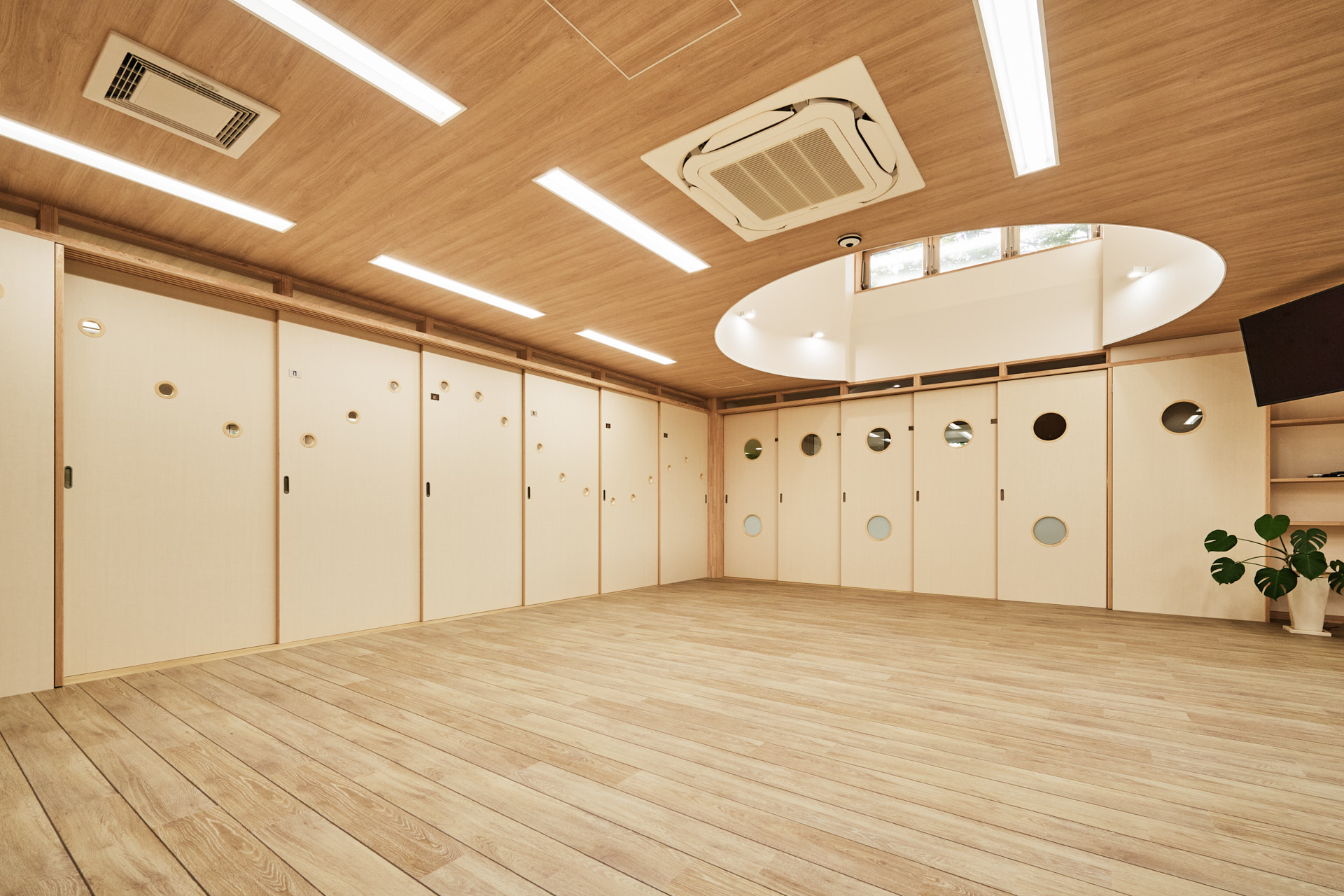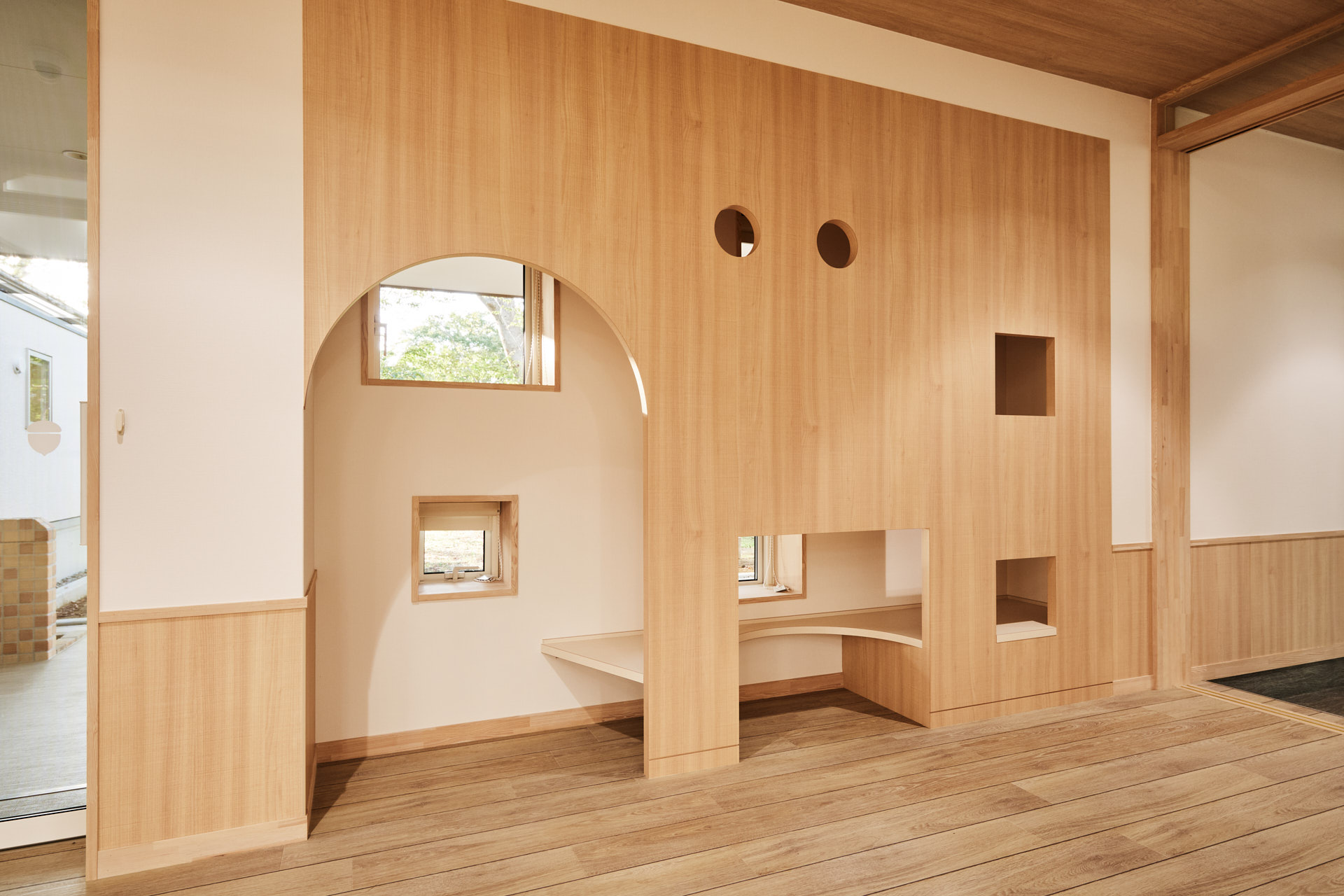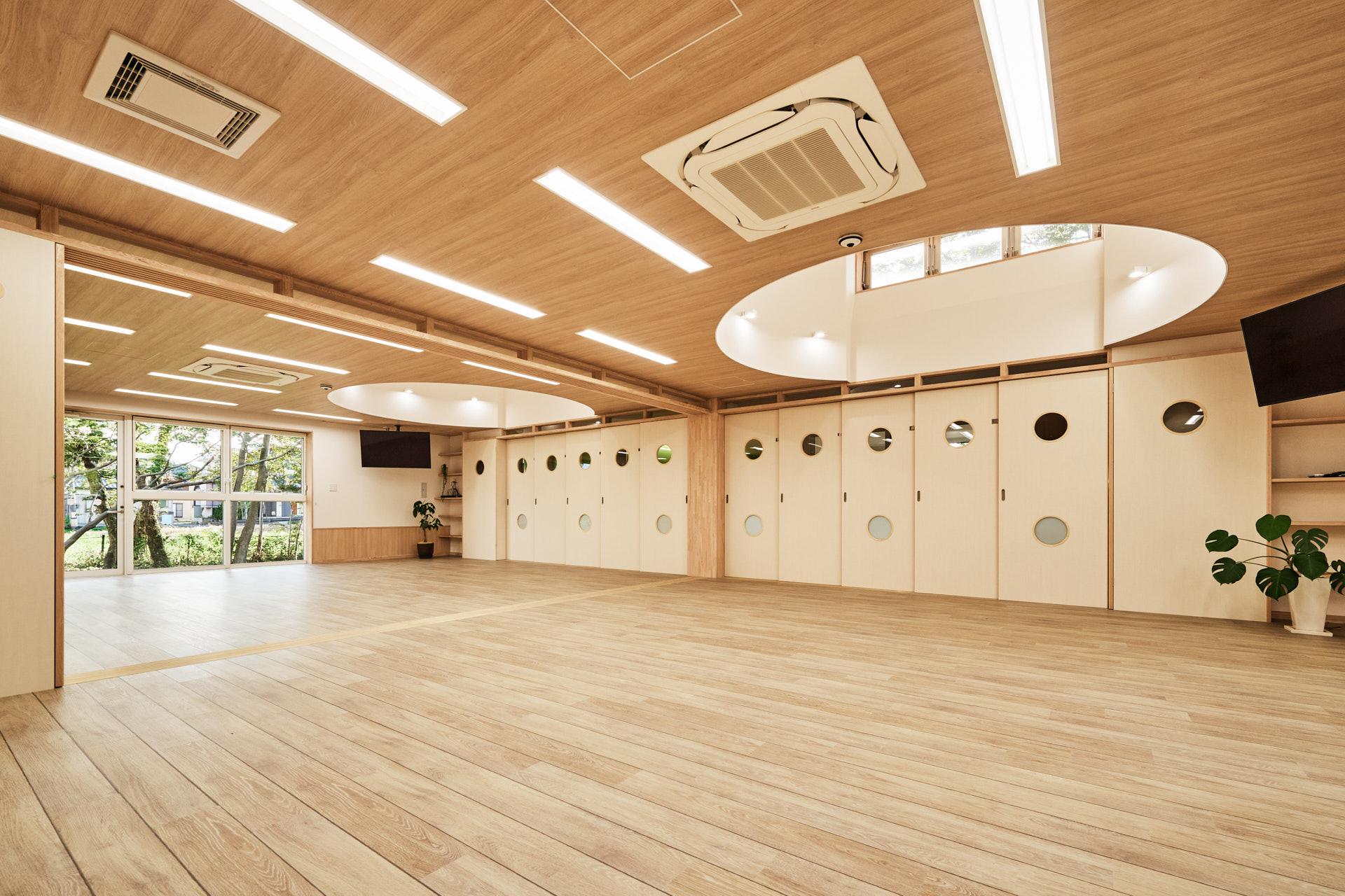 全方位のぞける森海窓のある共有空間