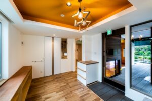 塔屋は保育室や地域交流スペースの吹抜となっておりますが、このアプローチによって内部に入ったときにより広がりを感じる設計になっています。